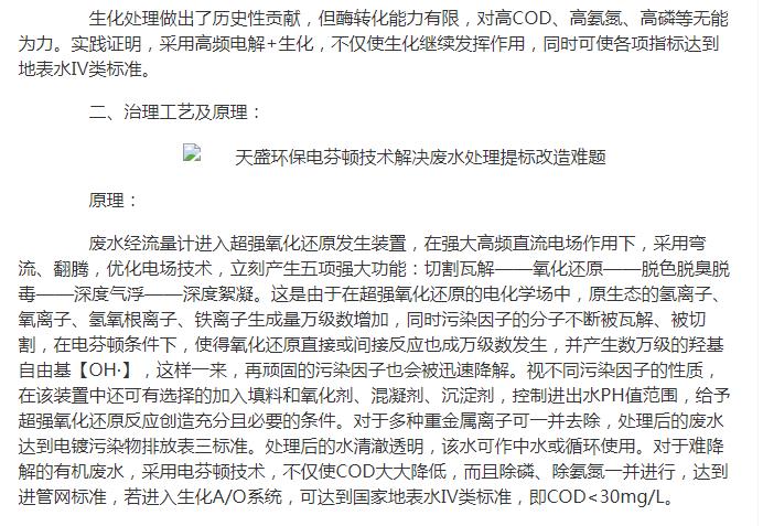 河南網轉載:天盛環(huán)保電芬頓技術解決廢水處理提標改造難題