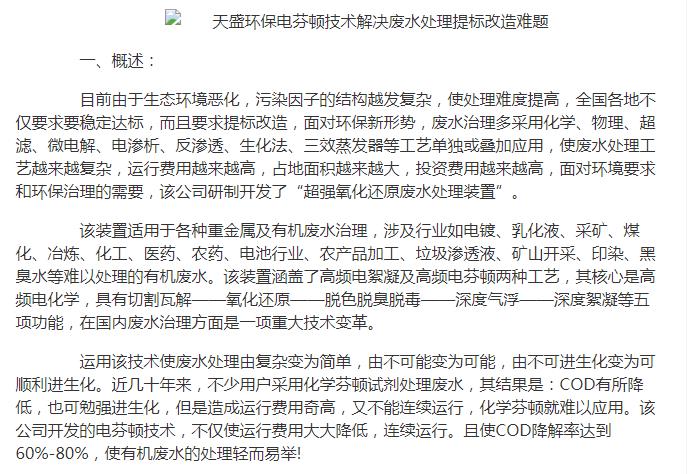 亞洲在線刊登:天盛環(huán)保電芬頓技術解決廢水處理提標改造難題