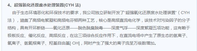 超強氧化還原廢水處理裝置(CYH法)處理各種有機廢水、各種重金屬廢水