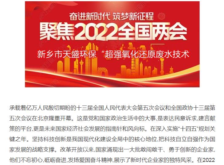 中國(guó)高新技術(shù)網(wǎng)發(fā)布:《關(guān)注:解碼科技創(chuàng)新》——新鄉(xiāng)市天盛環(huán)?!俺瑥?qiáng)氧化還原廢水處理技術(shù)”