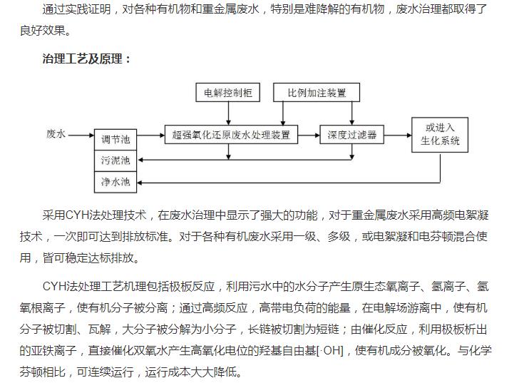 超強(qiáng)氧化還原廢水處理裝置(CYH法)處理各種有機(jī)廢水、各種重金屬?gòu)U水